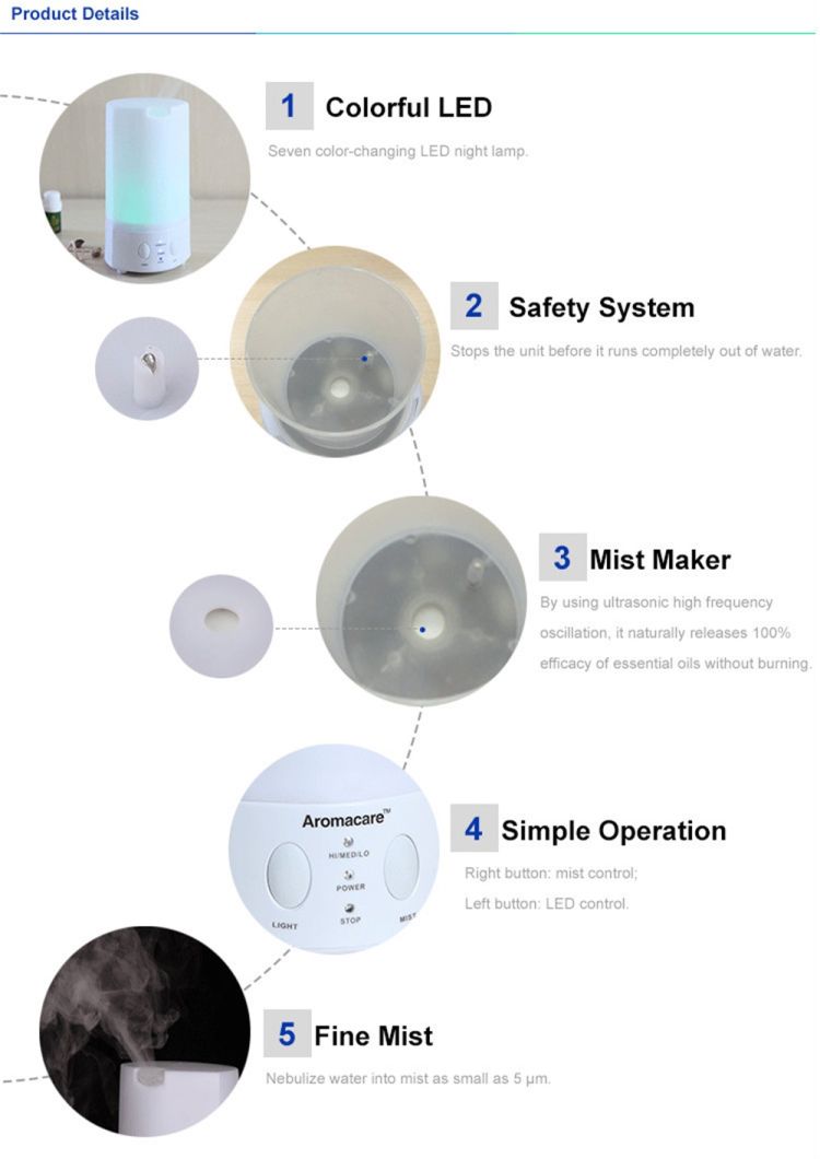Item Tittle-- Ultrasonic Humidifier Mute Aromatherapy Essential Oil Diffuser Colorful LED Atomization 3 Modes
