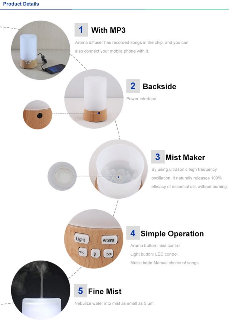 Item Tittle-- Ultrasonic Humidifier Aromathrapy Essnetial Oil Diffuser Atomization Container MP3 Music Player Bedroom Office