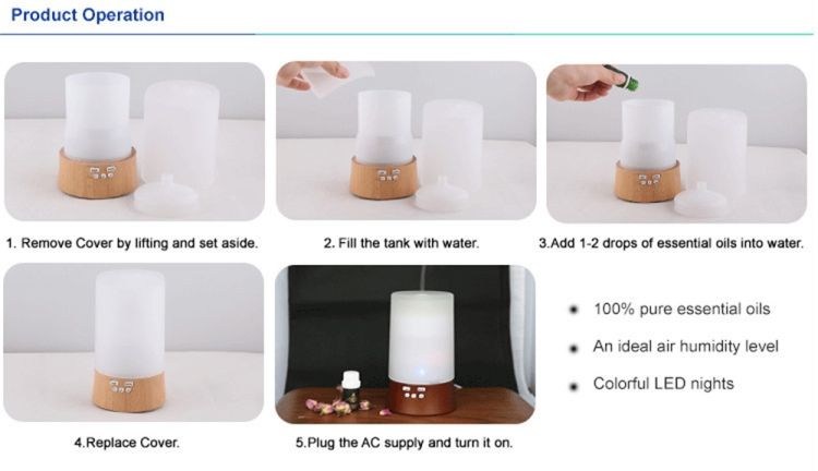 TIMER FUNCTIONAL an accurate timer settled inside to put aromatherapy operation in a specific period, 3 patterns for choice: 1/3/8 hour.