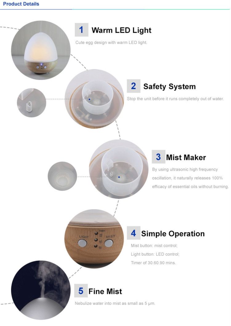 Item Tittle-- Warmlight Ultrasonic Humidifier Mute Timer Aromatherapy Essential Oil Diffuser Colorful Atomization 200ML