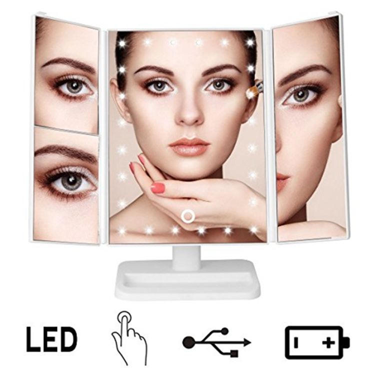 1.The Cosmetic Touch: Dimmable touch screen LED lighted makeup mirror with lights that dim as you press and hold your finger on the touch sensitive button to help you get exactly the right amount of light to touch-up your makeup or apply fake lashes.