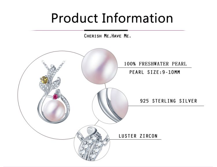 CYNMOON natural freshwater pearl pendant necklace silver jewelry for Women sterling silver jewelry