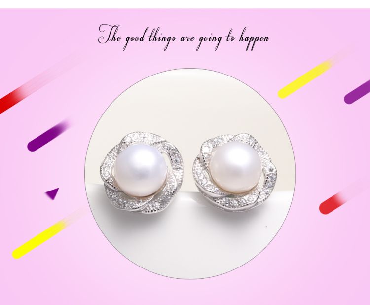 CYNMOON Natural Freshwater Cultured Pearl Stud Earrings Jewelry,Flower Shaped Silver Pearl Earrings