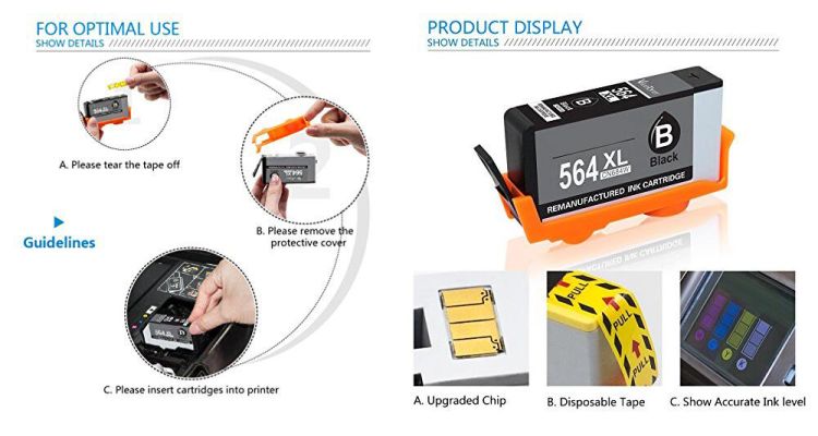 Item Tittle-- Ink Cartridge Replacement for HP 564XL (Black,Photo Black,Cyan,Magenta,Yellow) Photo Smart 5510 7510 Combo Deskjet High Yield