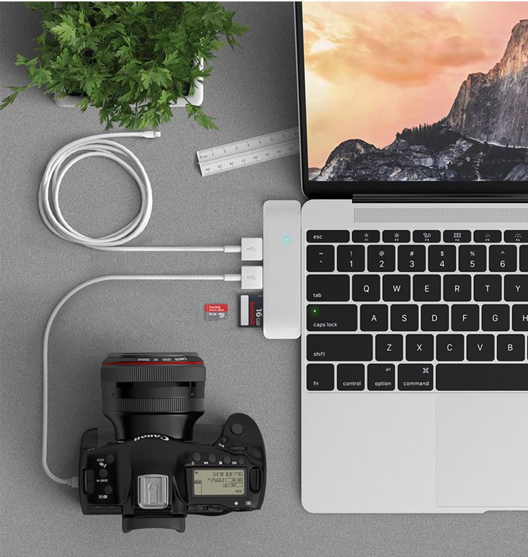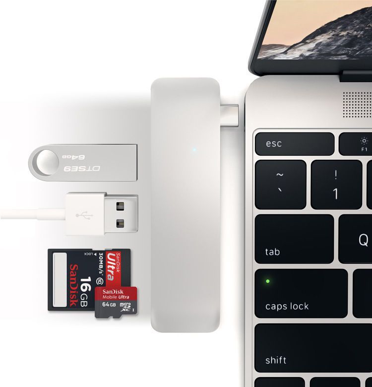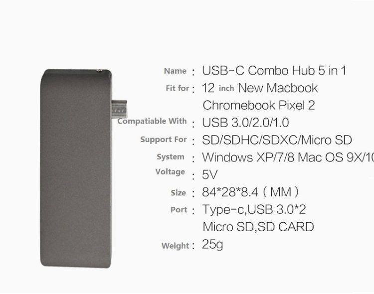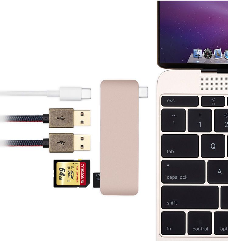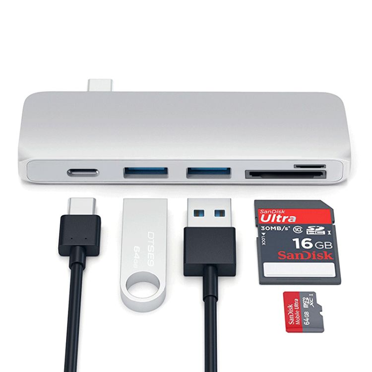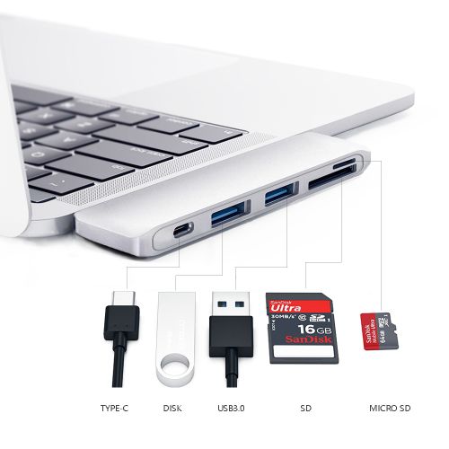 Expand your Type-C port – features two USB 3.0 ports, a SD and Micro SD card slot, and a charging port
