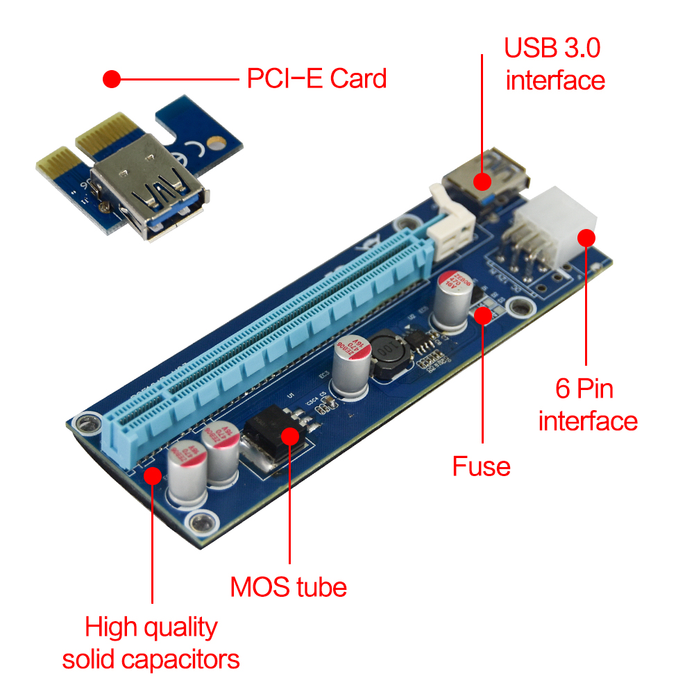 Item Tittle-- USB3.0 PCI-E Express 1x to 16x Extender Riser Card Adapter SATA 6Pin Power Cable