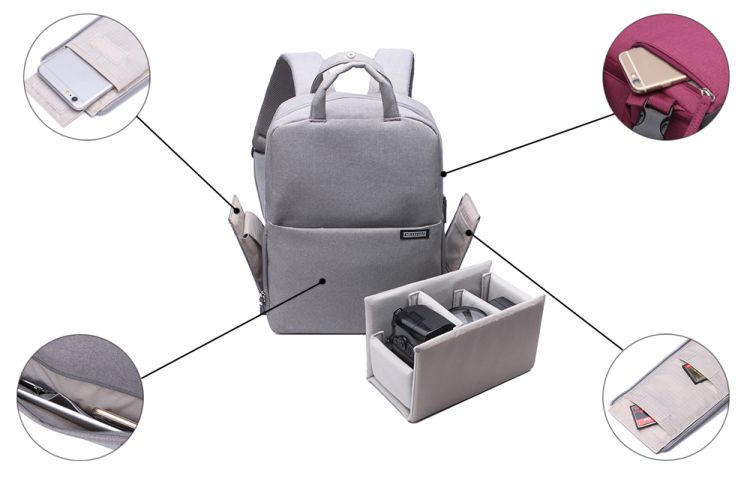 Additional pockets for 13-inch laptop, pad, smartphone, and tripod can also be included, large enough space and multifunction