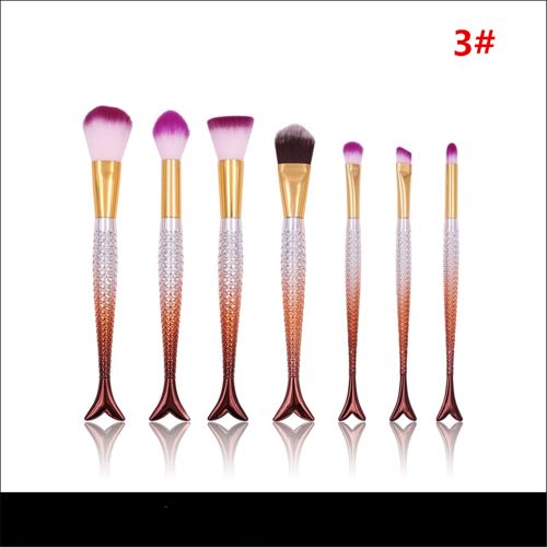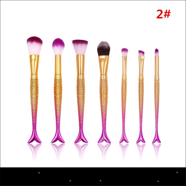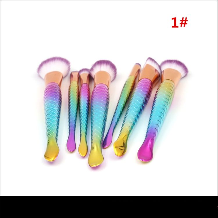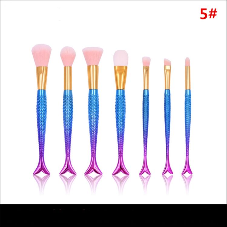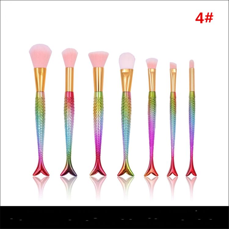 Coshine 7pcs/set Colorful Mermaid Makeup Brush Set, for Foundation, Eyeshadow, Blush, Cream, Concealer, Loose Powder.
