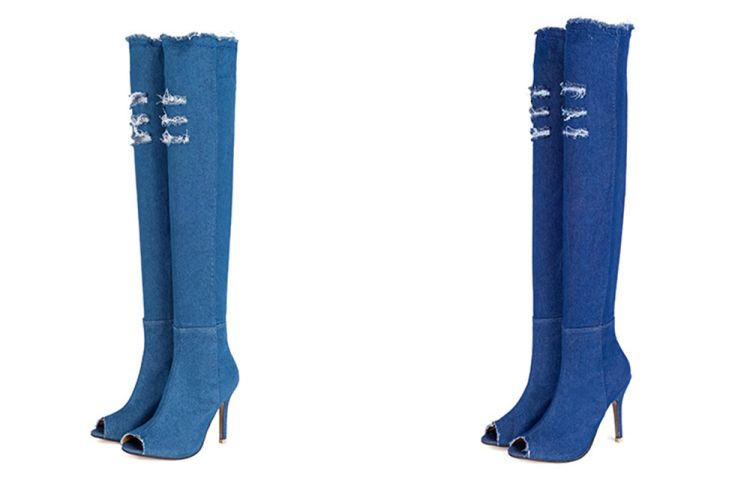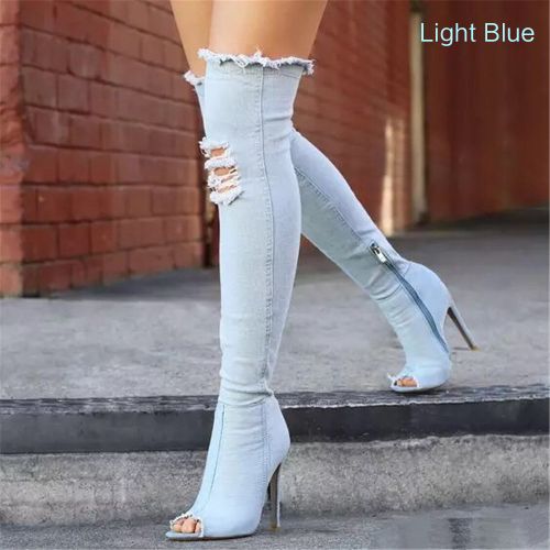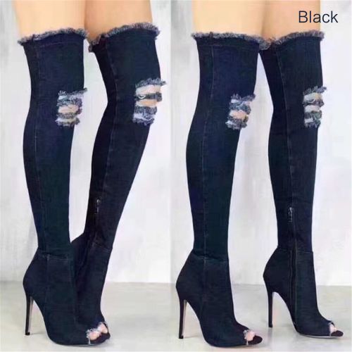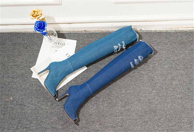 1pair * Thigh High Over Knee Stretch Denim Sexy Women Boots
