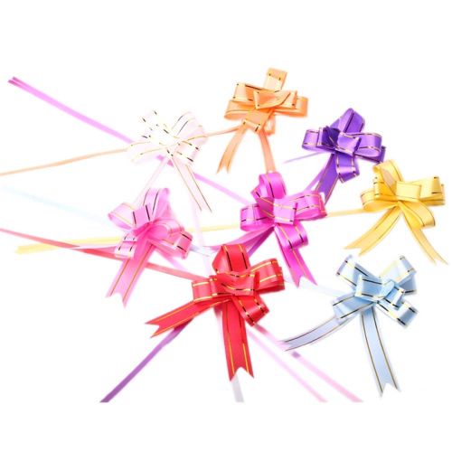 This is 10pcs 0.7' Beautiful Golden Edge Pull Bow Ribbon Red. It is high quality and never used. The beautiful bow will add a classic romantic touch to your wedding. It´s great to use for decoration, wedding, birthday, etc.