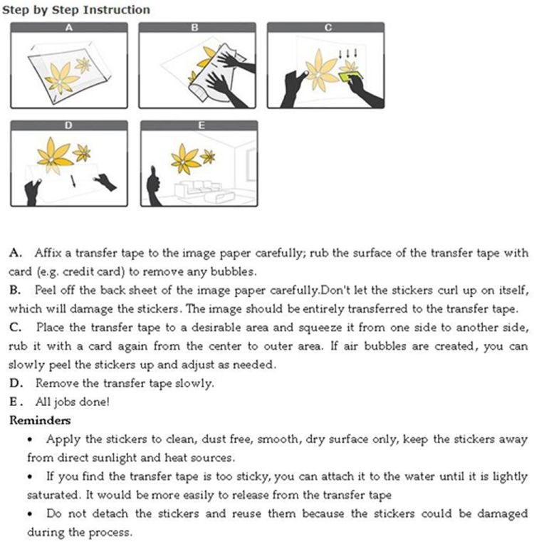 The Wall Sticker is the perfect and convenient way to adorn and decorate any space. The Sticker is easy to peel off and to stick on walls, doors, windows, tables, refrigerators, and more! Perfect for nurseries, homes, stores, dorms, and anywhere else! It′ll liven up any room and give it a new vibrant life!