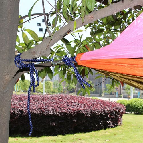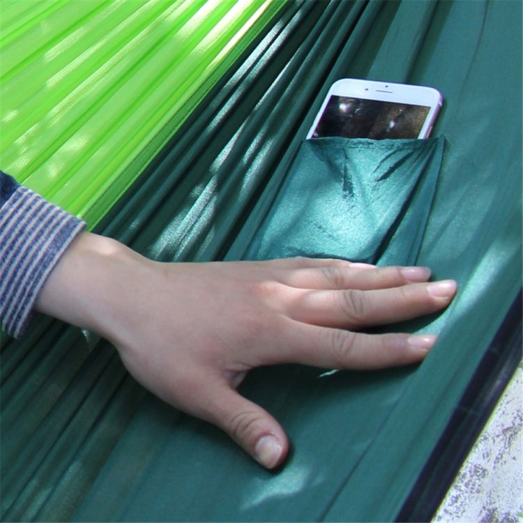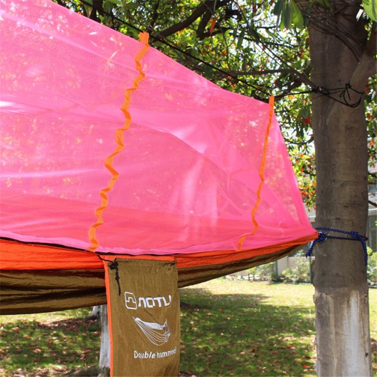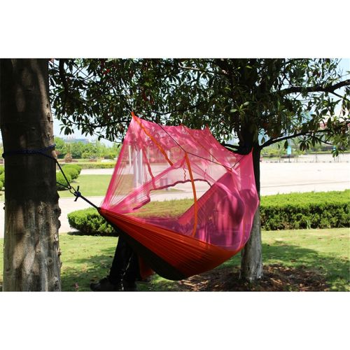 The AT6730 Nylon Parachute Fabric Double Hammock with Anti-mosquito Mesh Roof offers a comfortable relaxation choice for lounging in the sun or under the tree. It is designed with a mesh roof that protects you from annoying mosquitoes and bugs. Lightweight though, it can hold as much as 200kg. Firm construction allows for an even disbursement of body weight to eliminate pressure points. Moreover, its high-strength 210T nylon taffta fabric is soft and comfortable. And you can easily tie it between two posts or trees with the attached rope and hooks. Don't hesitate to get one!