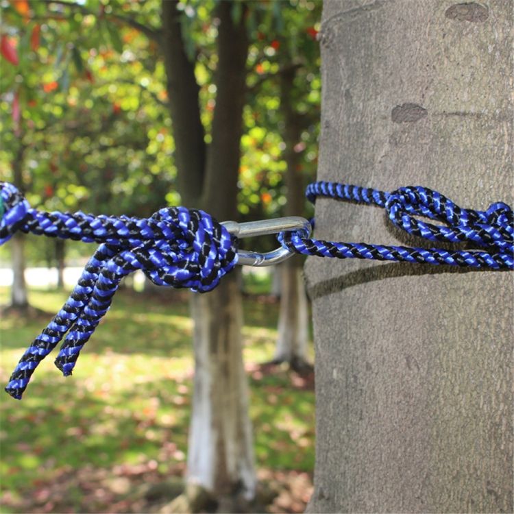 You can easily tie it between two posts or trees with the attached rope and hooks
