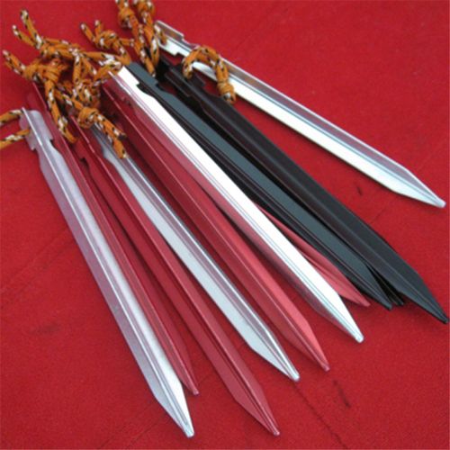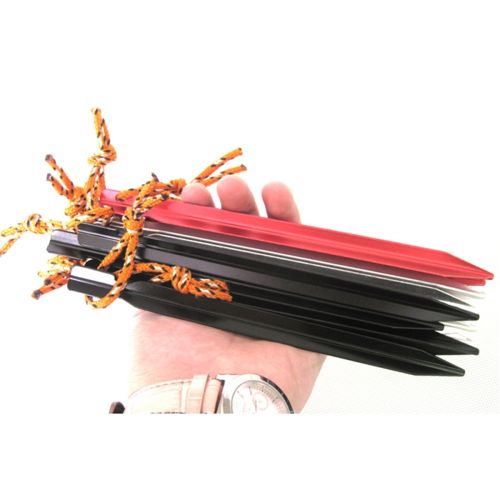 With excellent holding ability and light weight, the 10pcs AT6535 Hard Aluminum Alloy Tent Peg Tent Stake is an ideal replacement for traditional tent stakes. It is made from hard aluminum alloy that does not bend out. Its Y-beam design makes it easier to probe into the ground as well as providing great holding power. Reflective cord on the tail increases visibility and easier removal. And it is perfect for family camping, backyard or circus tent application. Click and order now!