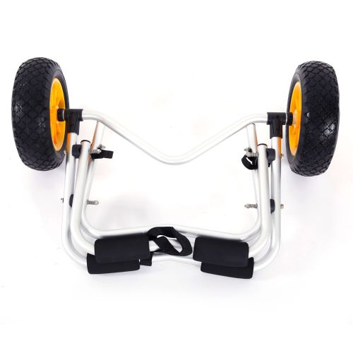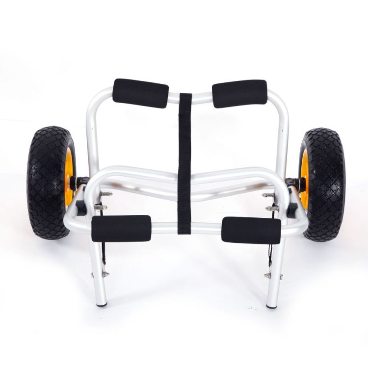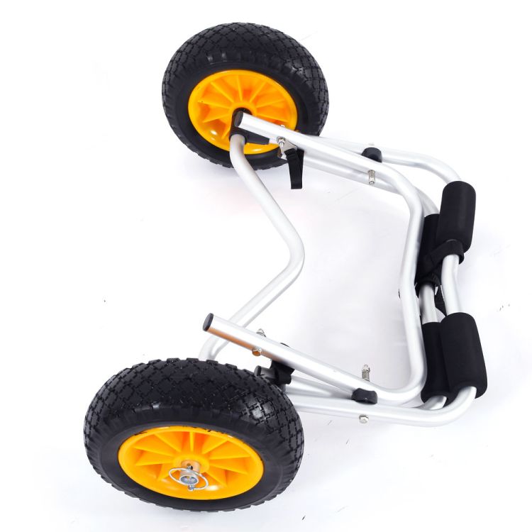 1.5MM Plug Pin Aluminum Alloy Canoeing Trailer Cart is a great way to get your boat and gear out of the water. Easy rolling tube tires and a light aluminum frame can handle certain loads. Adopting premium PU and aluminum alloy, it is ultra solid and durable to use. All kayak carts can be stowed flat by folding the cart frame and removing the wheels. Well, don't hesitate if you like this offer!
