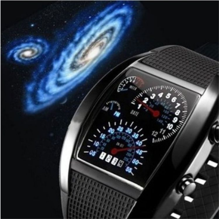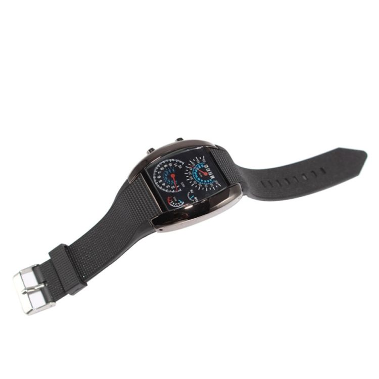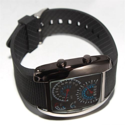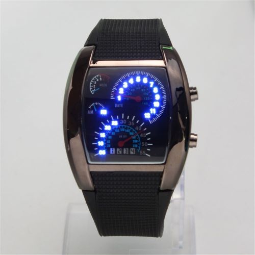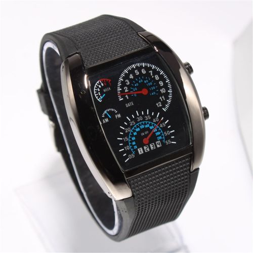 Popular Blue LED Light Aviation Speedometer Wrist Watch Black