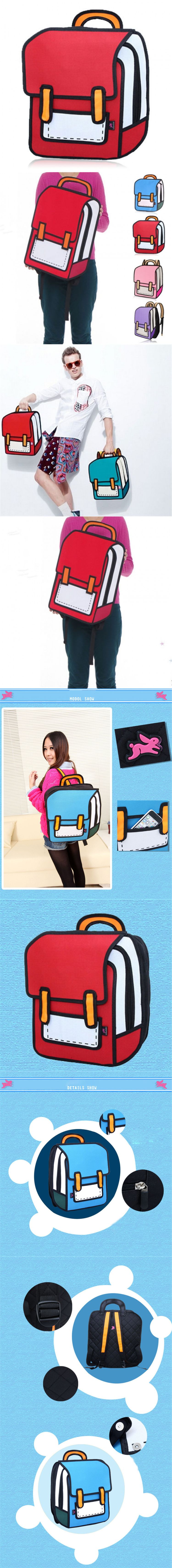 Specially designed for all bag addicts and fashion pioneers, our Creative 3D Stereoscopic Cartoon Nylon Backpack Schoolbag must catch your eyeballs easily! The humanized and ergonomic design brings not too much burden to your shoulders so that you won' t feel exhausted after a long time carrying. Zippered and decorated with unique 3D pattern, our backpack is an unparalleled fashion accessory to help you display your preference and individuality while all kinds of daily necessities will be kept in place. In a word, the backpack surpasses your expectation and goes beyond its price! Good choice for you!