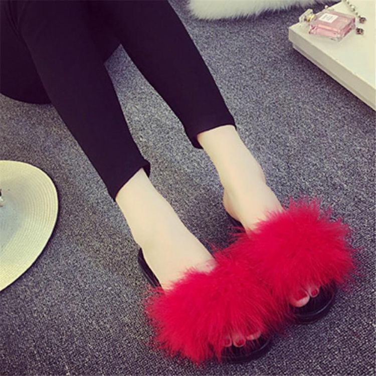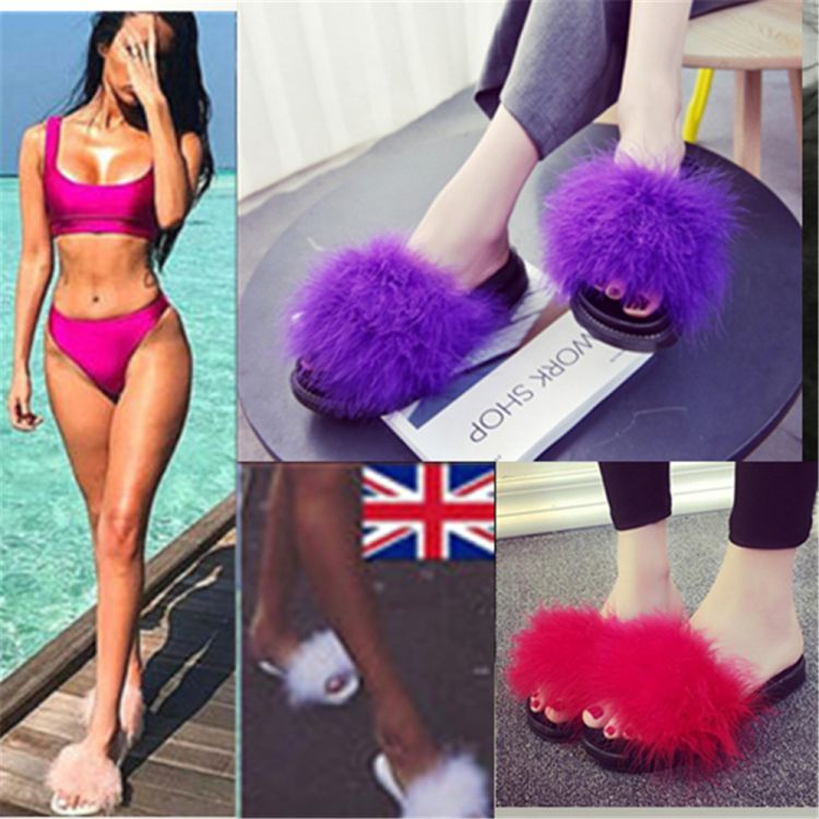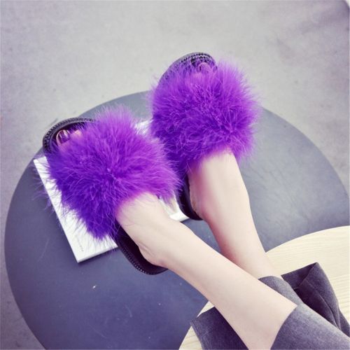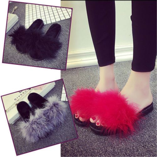 Women Feather Sliders Slippers Feather Fluffy Marabou Mules Open Toe Sandals Multi-Colors