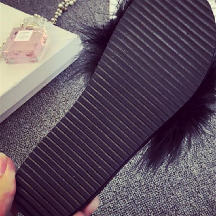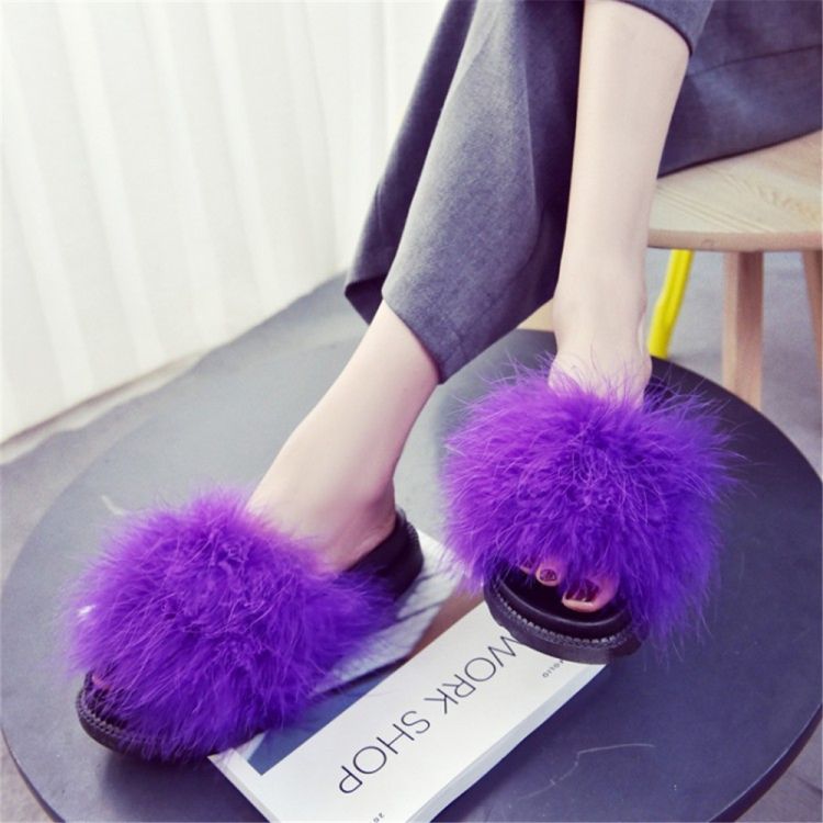 Beautiful Platformed Sandals With Fluffy Marabou Toe Strap