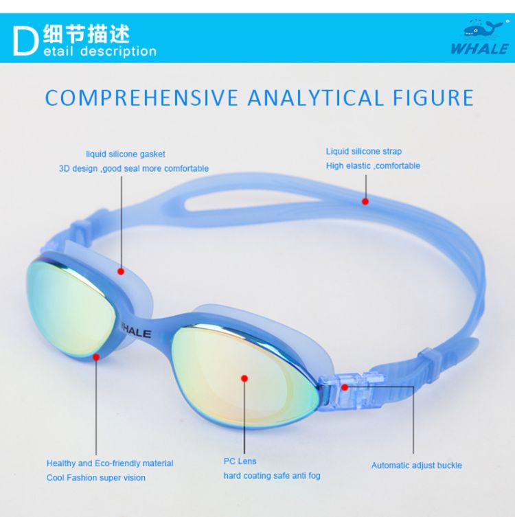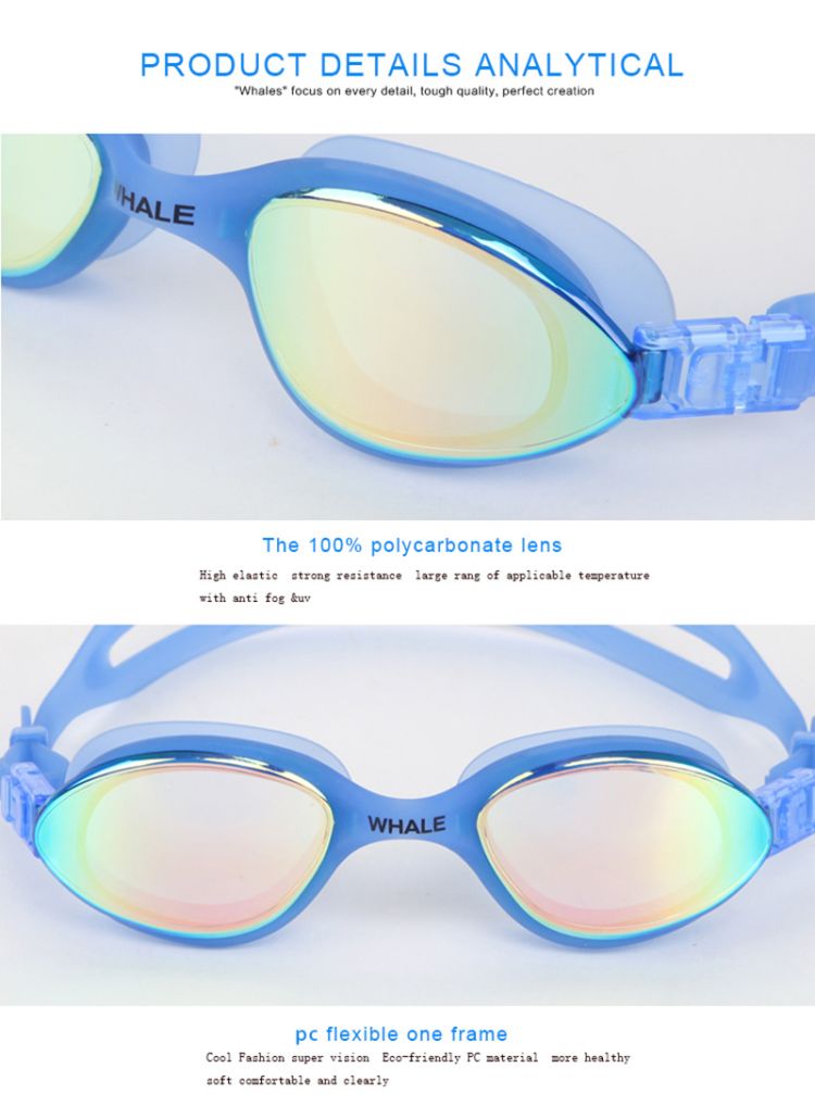 4.Usually,electric coating lens suit for outdoor swimming,Transparent lens suit for indoor swimming.
