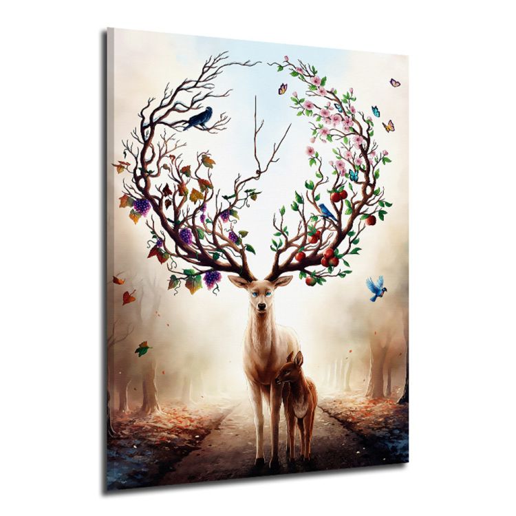 Modern Abstract Huge Wall Art Oil Painting On Canvas Nordic Elk Unframed Decor