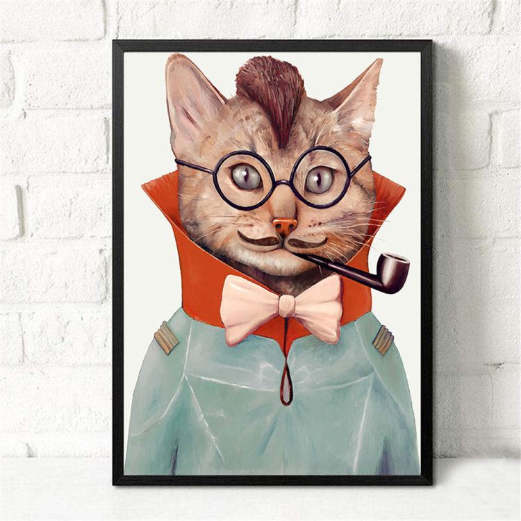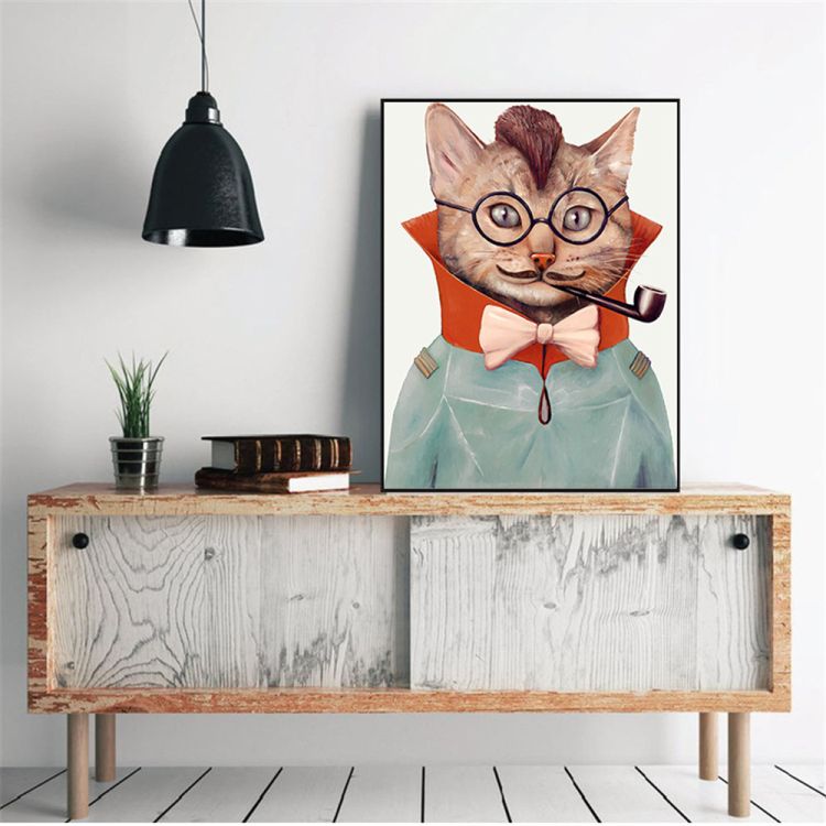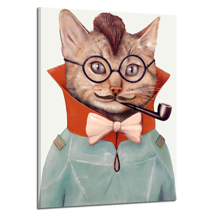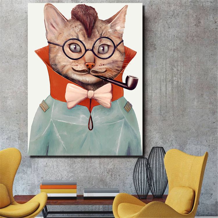 Modern Simple Huge Wall Art Oil Painting On Canvas Glasses Cat Unframed Room Deco