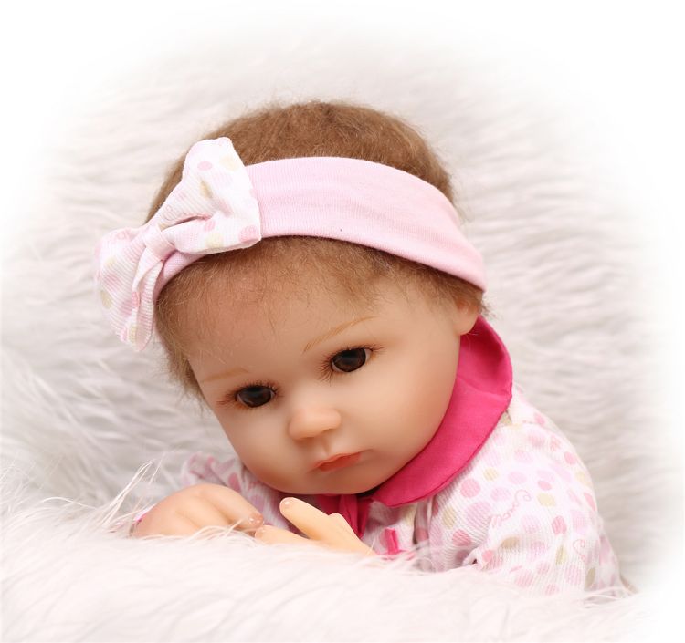 Hair: mohair rooted and naturally similar baby hair , can be washed and combed like a real baby, brown hair.