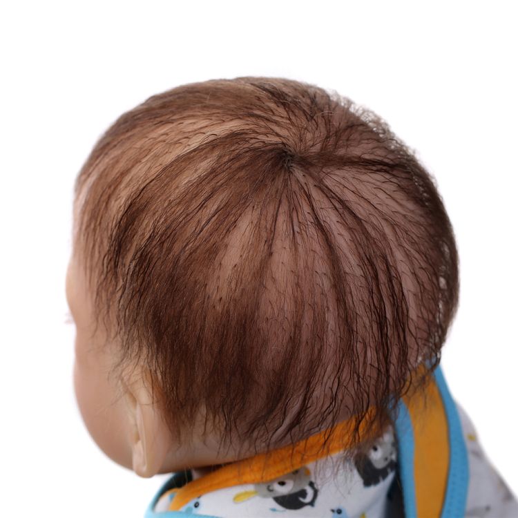 Hair: mohair rooted and naturally similar baby hair , can be washed and combed like a real baby, brown hair.