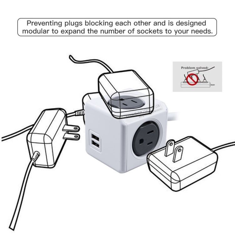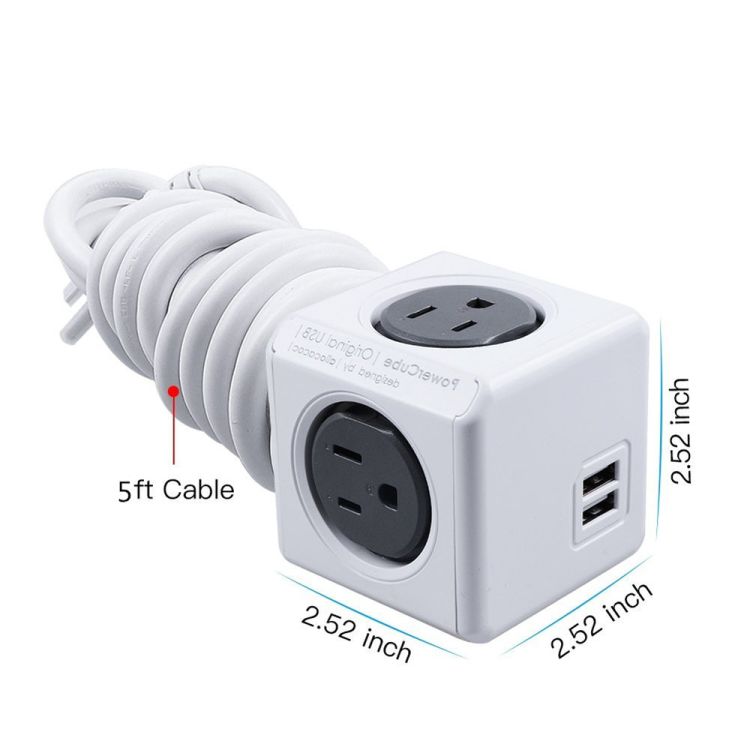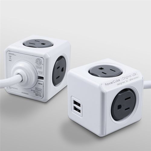 - 4 Outlet Ports And Dual USB Ports: PowerCube with 4 outlet ports and 2 USB ports. You can charge 6 items simultaneously, and each side won' t obstruct others. Also can expand to even more outlets when combined