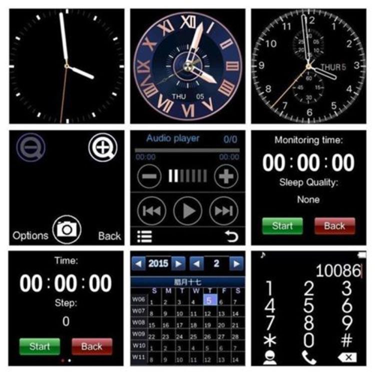 Taking pictures: Watch take pictures; memory storage; picture shows: PNG, JPG Remote control mobile phones;Storage to mobile phones; picture shows: PNG, JPG