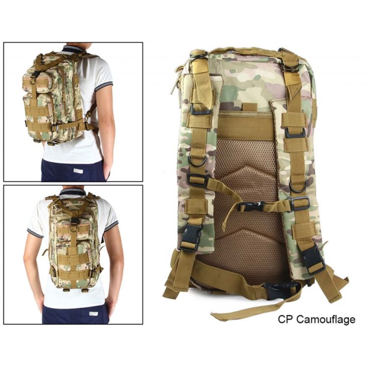 Our 3P marching backpack outdoor war game shoulder bag is made of premium quality oxford cloth with high durability so that it' s extremely suitable for outdoor using, such as hiking, travelling and cycling. Moreover, it′s composed of several adjustable buckles, belts, high strength plug in buttons and smooth zippers etc. Finally, you can put water bags, washing tools and other articles for daily use thanks to its large capacity. A practical accessory for all sports lovers!