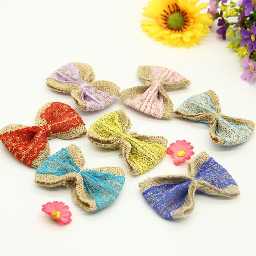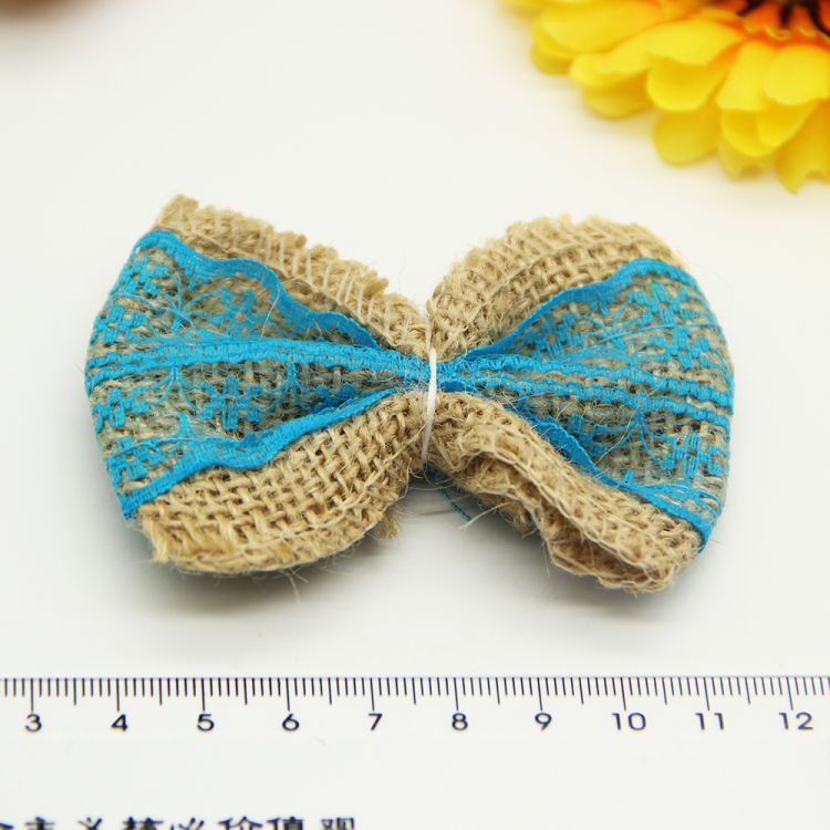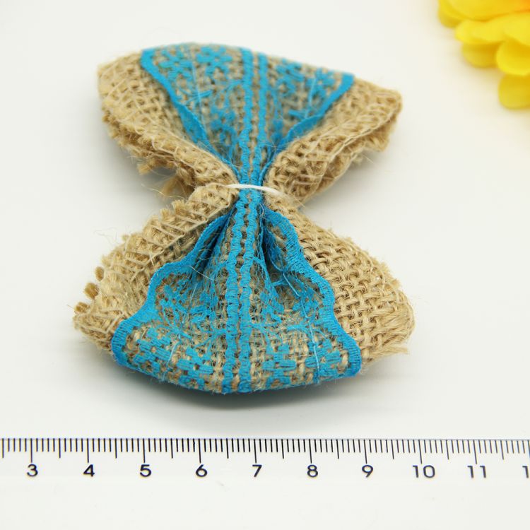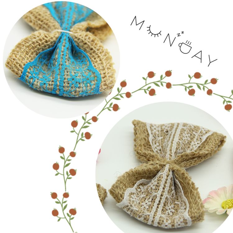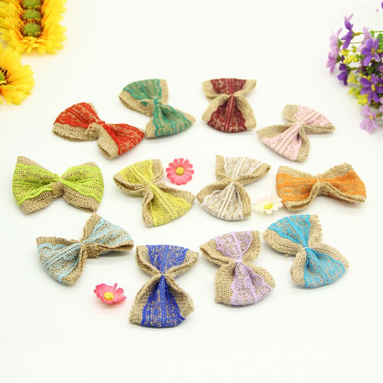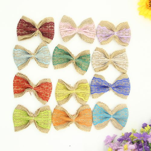 8pcs Jute Burlap Hessian Ribbon Bowknot/Vintage Wedding Decoration/Burlap Scrapbooking lace Hair Bow/Hat Accessorie Craft