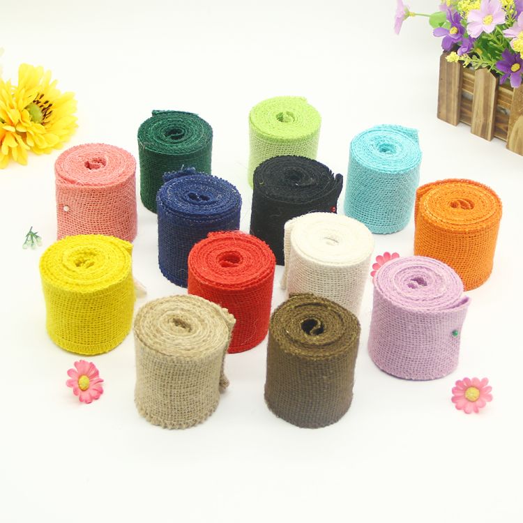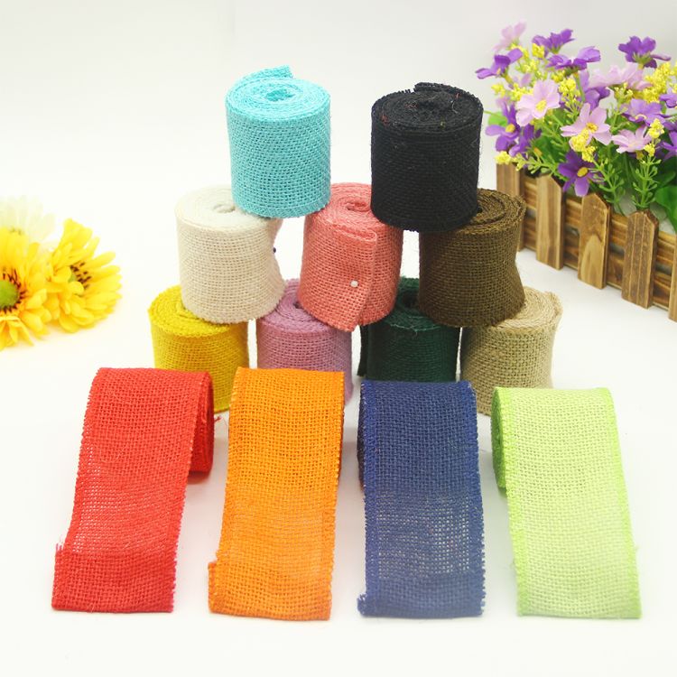 2 Meter 6cm(2.3inch) Mouticolour Jute Burlap rolls Hessian Ribbon for Wedding party decorations ,DIY wedding Burlap Flower
