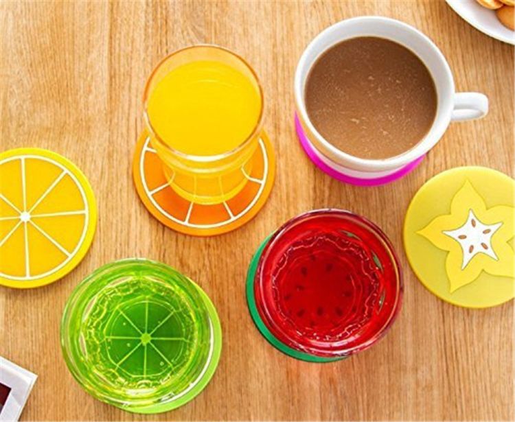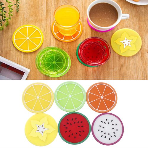 6pcs Fruit Coaster Colorful Silicone Cup Drinks Holder Mat Tableware Placemat
