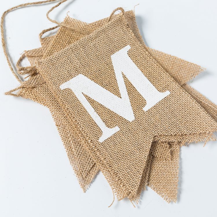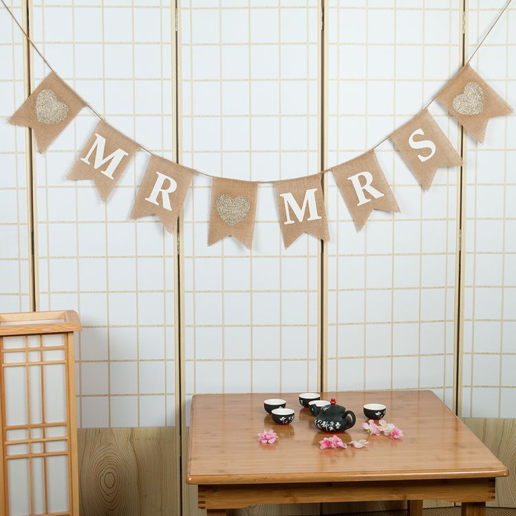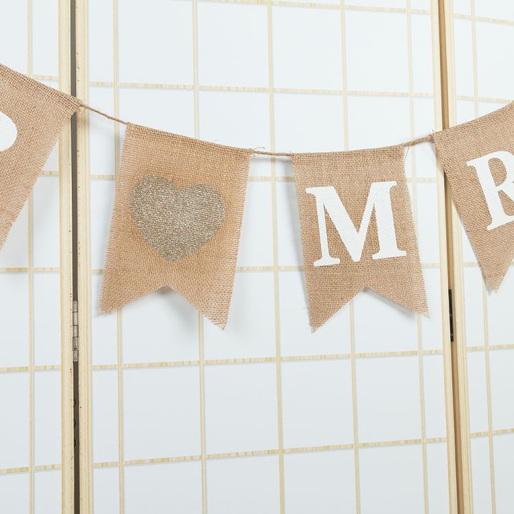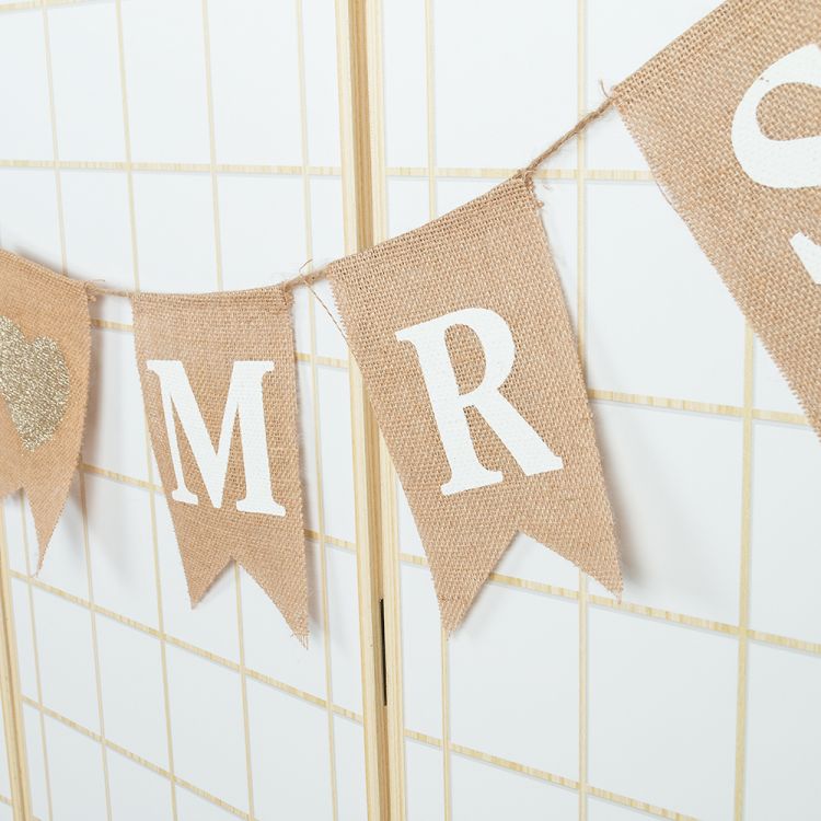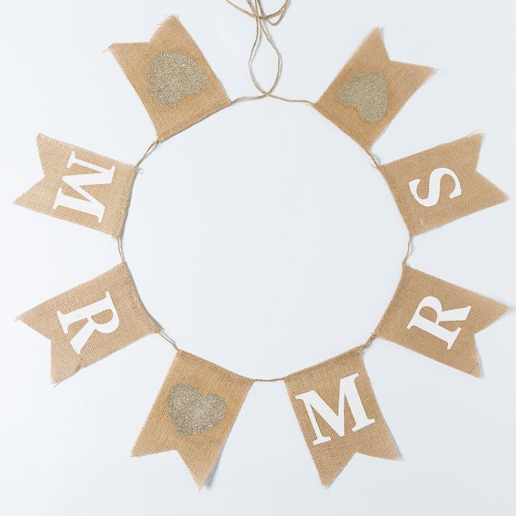 8pcs/set MR MRS Burlap Jute Flags Banner for Party Wedding Outdoor Event Store Opening Pennants Decoration