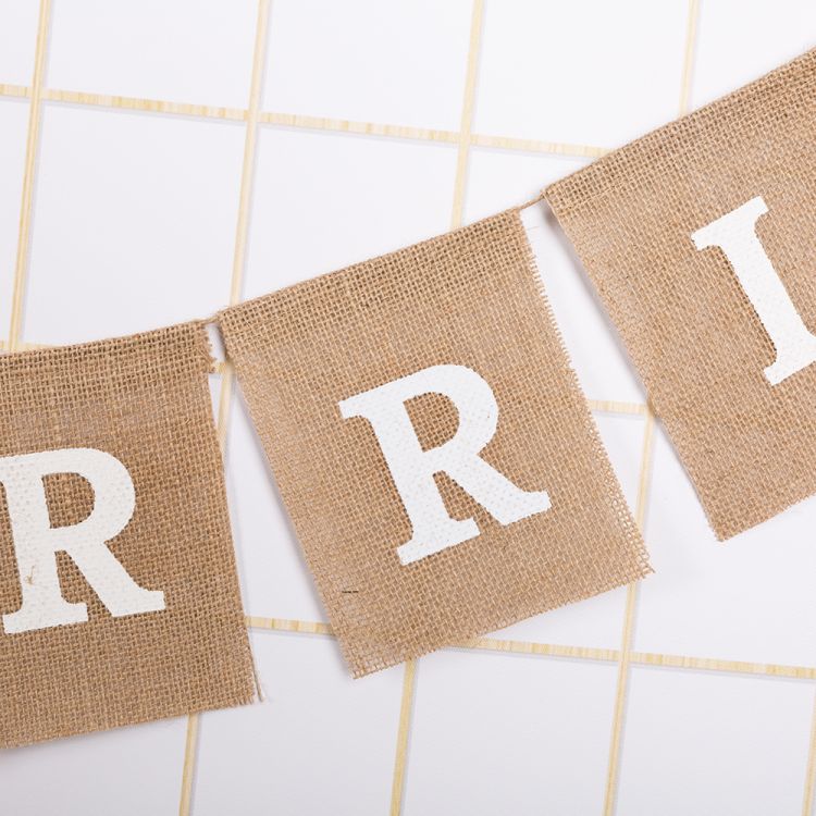 12pc/set Just Married Burlap jute Flags Banner for Party Wedding Outdoor Event Store Opening Pennants Decoration