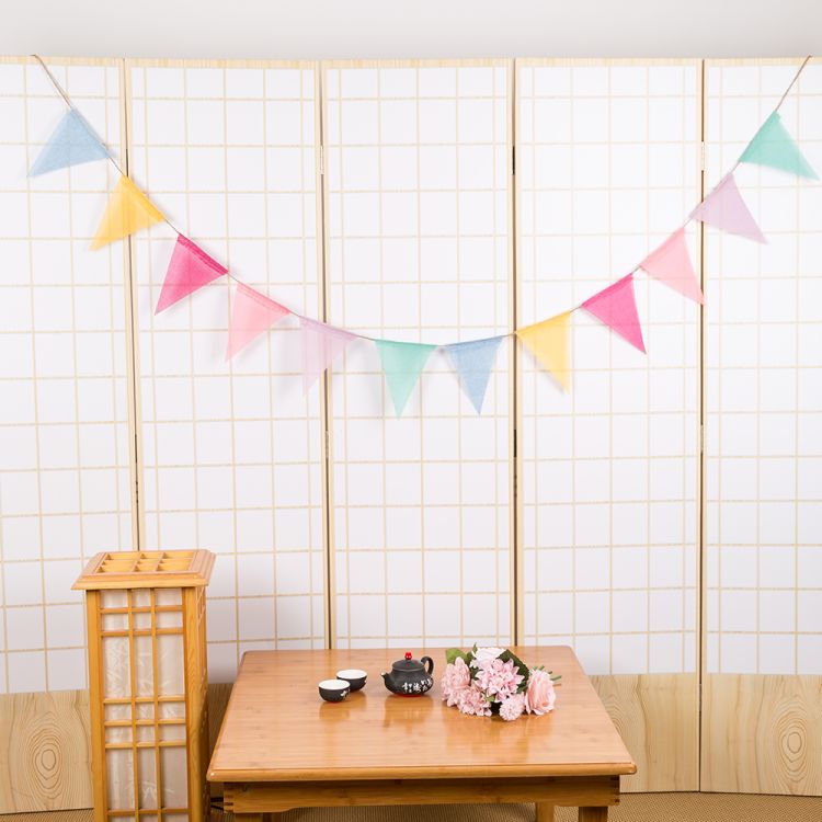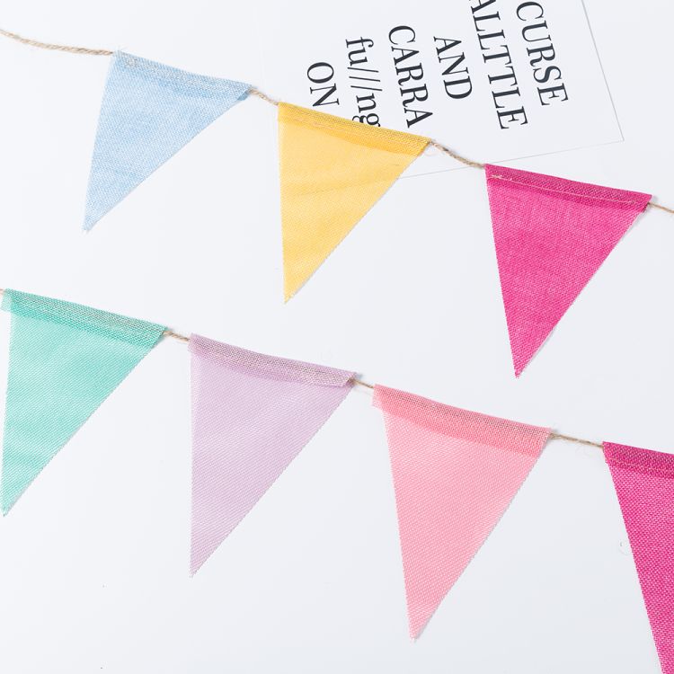 12pcs/set Faux Burlap(Terylene) Party Bunting Colorful Flags Banner For Party Wedding Outdoor Event Store Opening Pennants Decoration