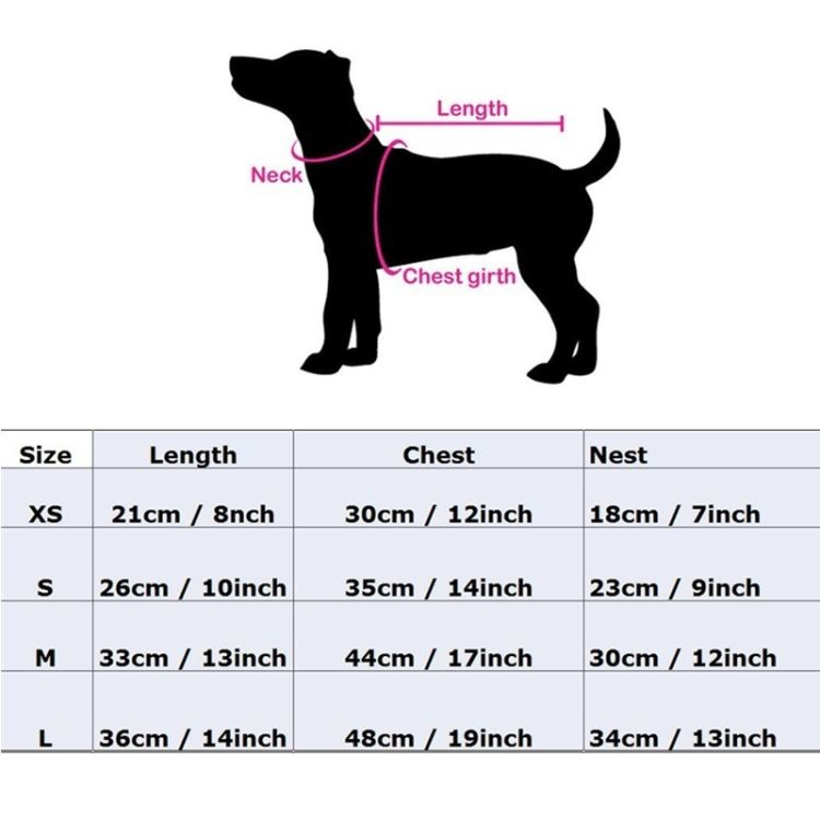 (Neck):XS:20cm,S:24cm,M:28cm,L:32cm