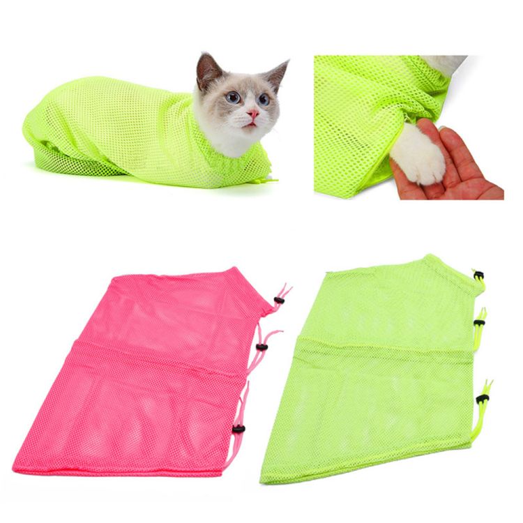 Mesh Cat Grooming Bathing Bag No Scratching Biting Restraint for Bathing Nail Trimming Injecting Examing