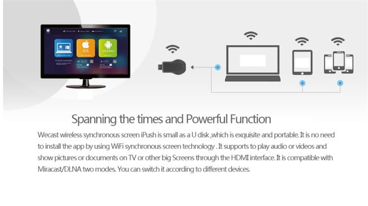 Support the miracast for IOS 5 or above, for Android 4.0 or above, for Windows8.1 or above