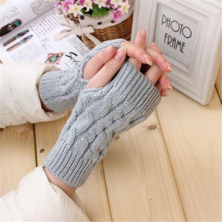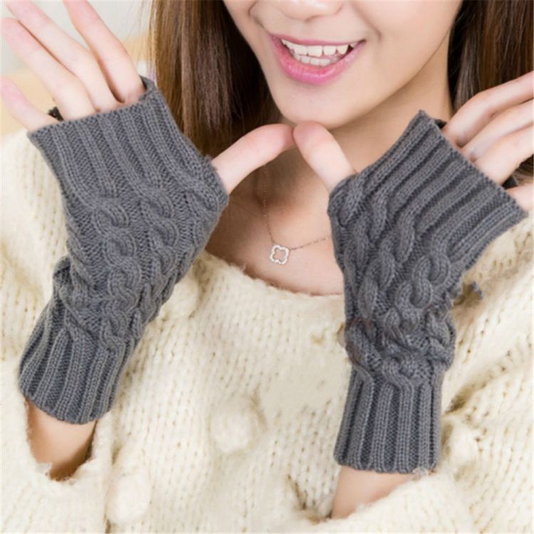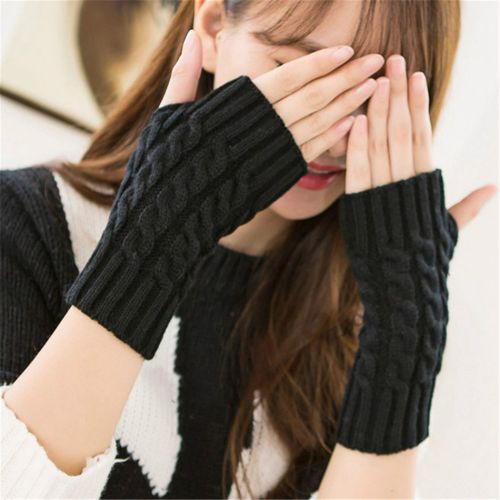 Stylish Hand Warmer Winter Gloves Women Arm Crochet Knitting Faux Wool Mitten Warm Fingerless Gloves