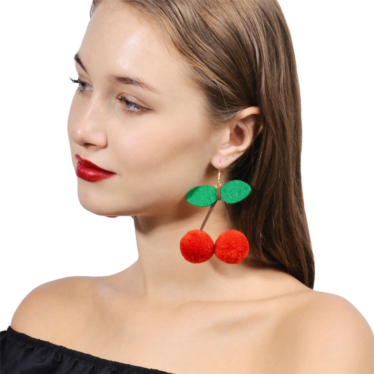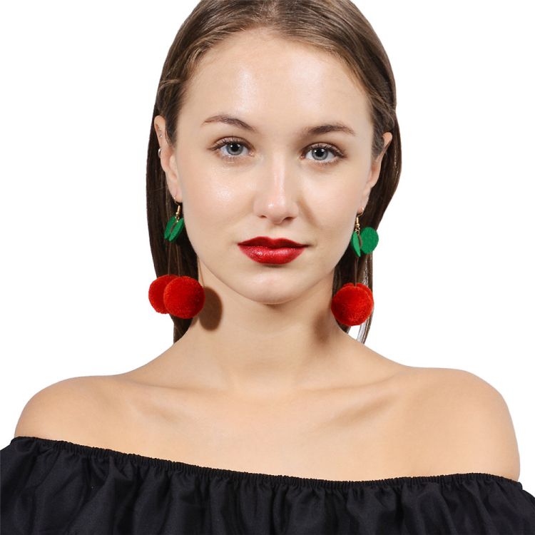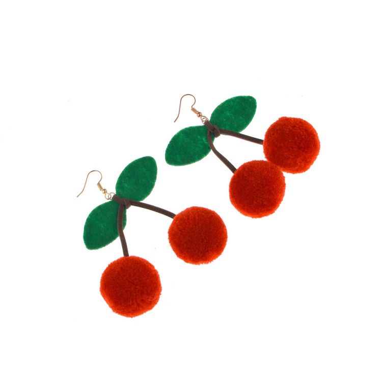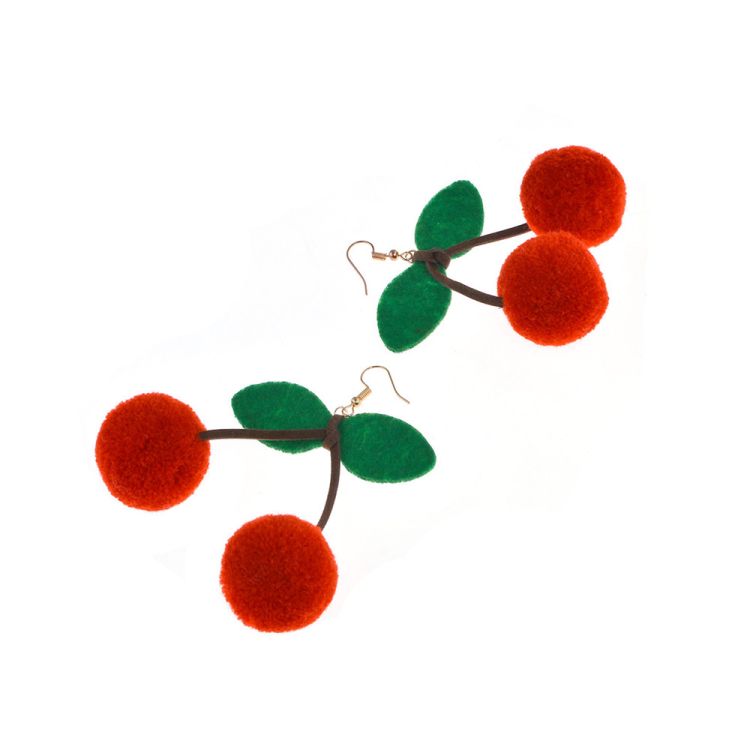 - These fun statement earrings feature a playful combination of pom poms and shine metal parts.