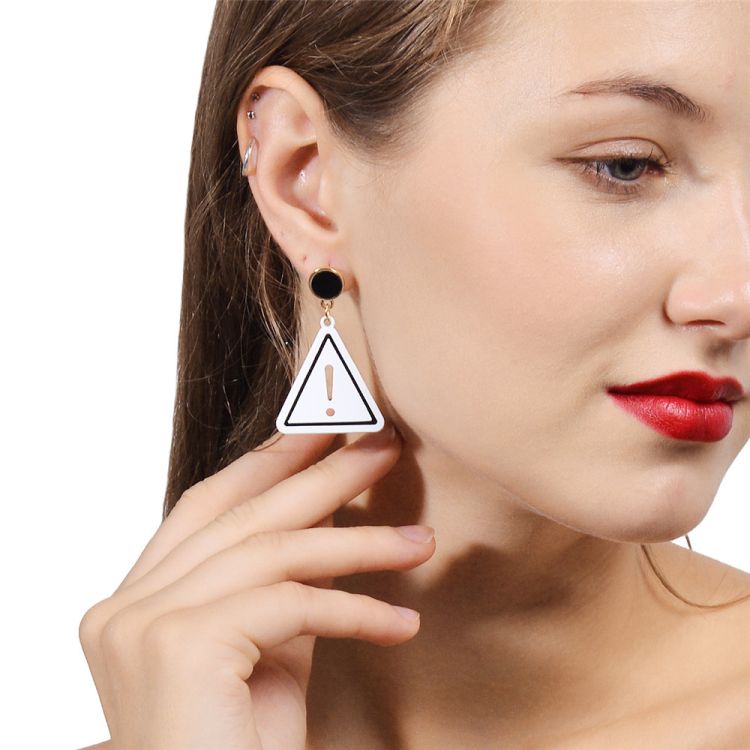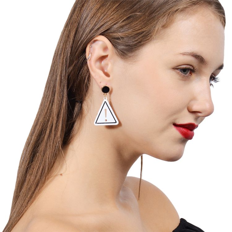 - These fun statement earrings feature a playful combination of triangle marks and shine metal parts.