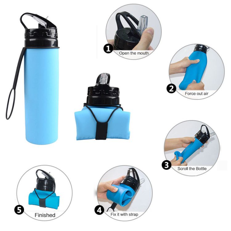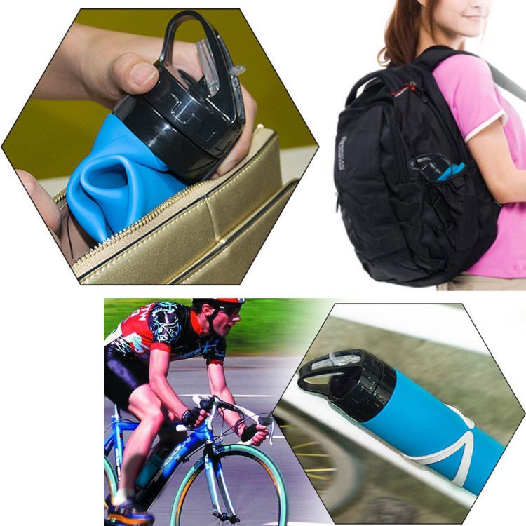 Time to go for an outing during the best season! It's very necessary to take along a bottle of water when you intend to go some outdoor activities, sports, beach, hiking, climbing, bicycling,journey etc. Engineered with a flexible silicone body, this unique reusable sports bottle maintains its sturdy shape for a comfortable drinking experience, yet can conveniently roll up for compact travel, collapsing to 1/3 its upright size.