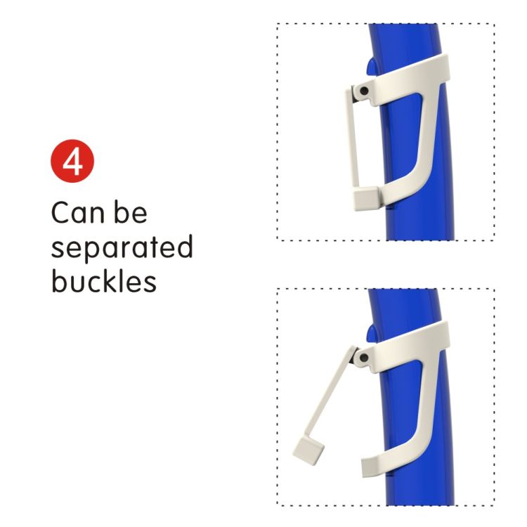 Revolutionary push-button buckle allows for easy, quick strap adjustment