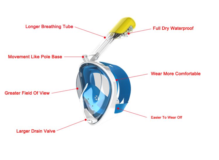EASY TO USE: Our snorkel mask fits for all swim newbies without any swimming experience. People can enjoy snorkeling who even cannot swimming when pairing with life jacket. For diving lovers, this snorkel mask can solve the tired which people need to bite breathing tube for long time and inconvenience of guttation outward, saving physical strength and enjoying snorkeling better.