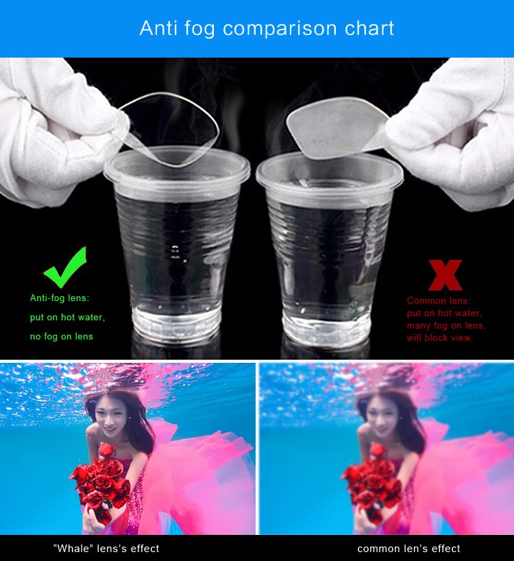 4.Usually,electric coating lens suit for outdoor swimming,Transparent lens suit for indoor swimming.