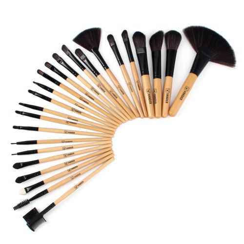 Soft Wooden Handle Vander Eyebrow Shadow Makeup Brush Set Tool 24pcs/set + Pouch Bag