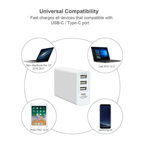 Apple MacBook pro 13-inch (2016, 2017), MacBook 12-inch (2015) with Thunderbolt 3 (USB-C) ports, iPad Pro 10.5-inch 29W Google Pixel, Nintendo Game Boy Switch, HuaWei Mate Book, Xiaomi book, Galaxy Note 6, Lumia 950 / 950XL, Nexus 5X / 6p, Note 5, OnePlus 2, LG G5, and HTC 10 with USB-C connector