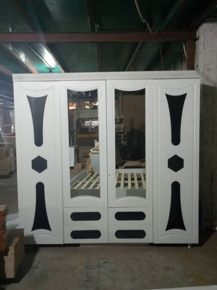 this is big size 4 door wardrobe, pvc wooden mdf wardrobe with legs and locks.